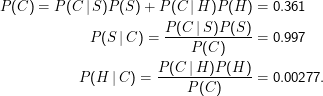 Mit den Ereignissen S (Spam) und H (Ham, gute Mail), C (” click“ kommt in Mail vor) ergibt sich