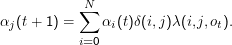 Ein Bild mag helfen; hier die Berechnung von α2(t+ 1):